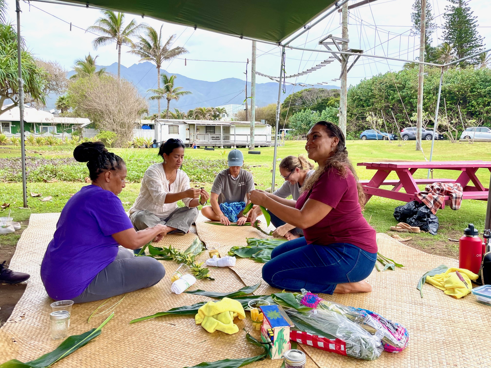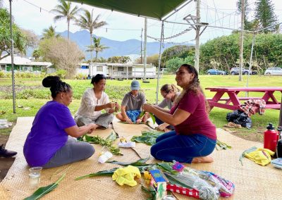 Past sessions have included kilo, t-shirt printing, banner making, mālama ʻāina, lei making, Mele/song writing, lomi, acupuncture, lupe (kitemaking) and lauhala weaving. If you’d like to mālama ʻāina, dress to get dirty! Invite others to sign up! This is a flexible and open space.